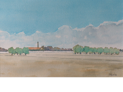 Titel: Uiterwaard met steenfabriek